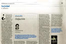 Dejación [artículo] / Juan Manuel Vial. La Tercera (Diario : Santiago, Chile)-- octubre 17, 2015, página 89. .
