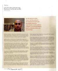 Luis Barrales, dramaturgo : poetizar el verbo de la calle [artículo] / Javier Ibacache. Cuaderno (Revista : Santiago, Chile)-- no 64 (Primavera 2009), página 4. .