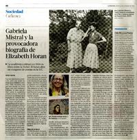 Gabriela Mistral y la provocadora biografia de Elizabeth Horan [artículo] / Javier García. La Tercera (Diario : Santiago, Chile)-- octubre 22, 2015, página 46. .