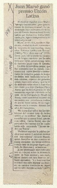 Juan Marsé ganó premio unión latina [artículo] / El Mercurio (Diaro : Valparaíso)-- nov. 19, 1998, p. C8. .