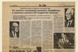 En emotivo ceremonial masónico despidieron a eminente maestro del magisterio nacional [artículo] / El Día Diario : La Serena, Chile)-- ene. 15, 1989, p. 8. .