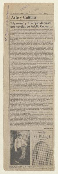 "El pasaje" y "La copia de yeso", dos novelas de Adolfo Couve [artículo] Bernardo Soria.