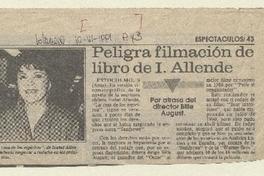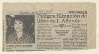 Peligra filmación de libro de I. Allende [artículo]. La Tercera (Diario : Santiago, Chile)-- jun. 10, 1991, p. 43. .