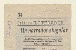 Un narrador singular [artículo] / Mariano Aguirre. La Nación. -- oct. 3, 1993, p. 34 retr. .