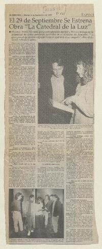 El 29 de septiembre se estrena obra "La Catedral de la luz" [artículo]. El Mercurio (Santiago). -- sept. 12, 1995, p. C21 retr. .