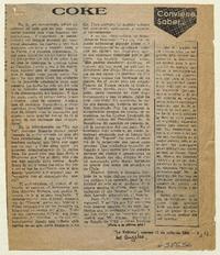 Coke [artículo] / SIR. La Tribuna (Los Angeles, Chile)-- jul. 11, 1980, p. 3 y 12. .