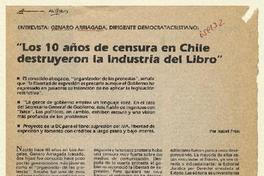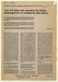 "Los 10 años de censura en Chile destruyeron la industria del libro" [artículo] / Isabel Frías. Panorama Literario e Informativo Libros del Mes (Santiago, Chile)-- no. 66 (noviembre 1983) .