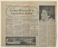 Verídica historia de la Universidad Austral : [entrevista] [artículo] / Suetonio. Las Últimas Noticias (Diario : Santiago, Chile)-- abr. 17, 1977, p. 4. retr. .