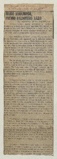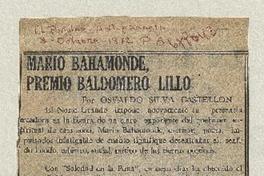 Mario Bahamonde, premio Baldomero Lillo [artículo] Osvaldo Silva Castelllón.