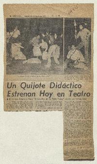 Un quijote didáctico estrenan hoy en el teatro. [artículo]
