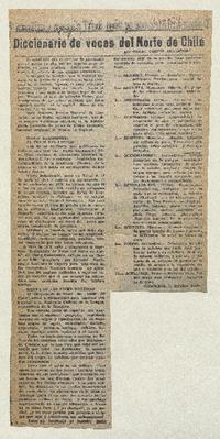 Diccionario de voces del norte de Chile [artículo] / Osmán Cortés A. Atacama (Copiapó, Chile)-- sept. 7, 1981, p. 3. .
