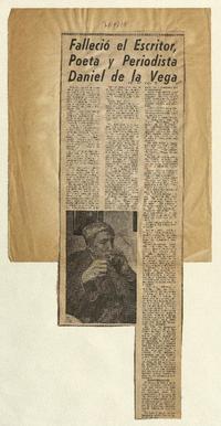 Falleció el escritor, poeta y periodista Daniel de la Vega [artículo] / El Mercurio (Diario : Santiago, Chile)-- jul. 30, 1971, p. 19. .