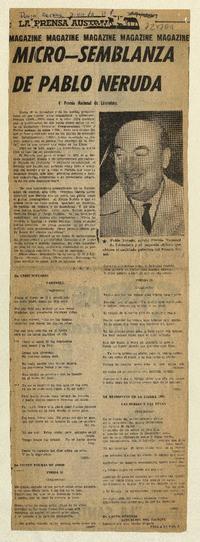 Micro-semblanza de Pablo Neruda [artículo] / J. R. F. La Prensa Austral (Punta Arenas, Chile)-- jul. 3, 1975, p. 7 y 9. retr. .