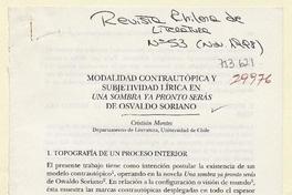 Modalidad contrautópica y subjetividad lírica en "Una sombra ya pronto serás" de Osvaldo Soriano [artículo] Cristián Montes.