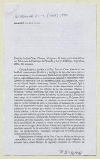 Plotino y orígenes [artículo] / Alvaro Pizarro. Diadokhé (Santiago, Chile)-- no. 1-2 (2001) p. 127-131. .