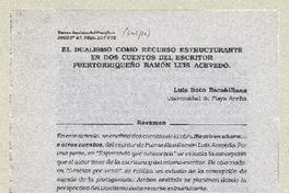 El dualismo como recurso estructurante en dos cuentos del escritor puertorriqueño Ramón Luis Acevedo [artículo] Luis Soto Escobillana.