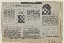 La última de Jaime Bayly [artículo] / Luis López-Aliaga. El Sur (Diario : Concepción, Chile)-- jul. 30, 2000, p. 6 (suplemento) retr. .