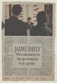 Jaime Bayly "mis comentarios no hay que tomarlos a pecho" [artículo] / La Hora (Santiago, Chile)-- ago. 23, 2000, p. 17. retr. .