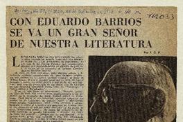 Con Eduardo Barrios se va un gran señor de nuestra literatura [artículo] F.O.P.