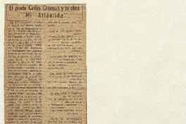 El poeta Carlos Casassus y su obra "Mi Atlántida" [artículo] / Aníbal Norambuena Figueroa. La Discusión (Chillán, Chile)-- sept. 11, 1967, p. 3. .