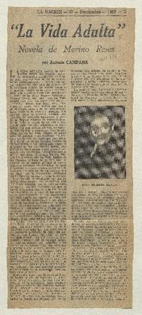 "La Vida adulta" [artículo] / Antonio Campaña. La Nación (Diario : Santiago, Chile)-- sept. 30, 1962, p. 5. .
