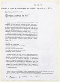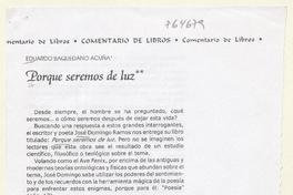 Porque seremos de luz [artículo] Eduardo Baquedano Acuña.