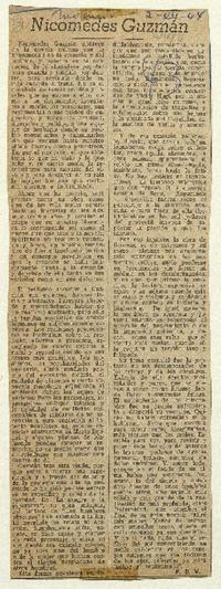 Nicomedes Guzmán [artículo] / F.D.V. El Mercurio (Diario : Santiago, Chile)-- jul. 2, 1964. .