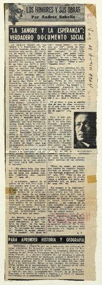"La Sangre y la esperanza": verdadero documento social [artículo] Andres Sabella.