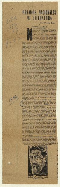 Premios Nacionales de Literatura [artículo] / Eduardo Ovaz. Lota (Diario : Chile)-- ago. 1957, p. 10. retr. .