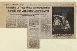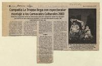Compañía La Troppa llega con espectacular montaje a los Carnavales Culturales 2003 [artículo]
