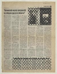 Balmaceda nunca comprendió los ataques que se le hicieron" [artículo] / Mario Rodríguez Ordenes. El Día (Diario : La Serena, Chile)-- ene. 2, 2002, p. 17. il. .