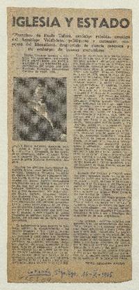 Iglesia y Estado [artículo] / Fidel Araneda Bravo. La Nación (Diario : Santiago, Chile)-- mayo 16, 1965. .