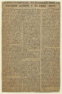 Mariano Latorre y su libro "MAPU" [artículo] / M.V. El Diario Ilustrado (Diario : Santiago, Chile)-- dic. 14, 1942, p. 3. .