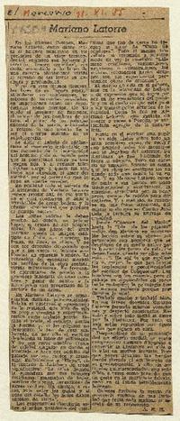 Mariano Latorre [artículo] / A.R.R. El Mercurio (Diario : Santiago, Chile)-- nov. 11, 1955, p. 3. .