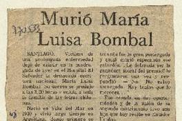 Murió María Luisa Bombal [artículo]