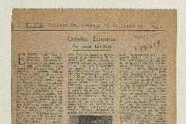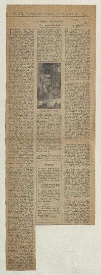 Crónica literaria [artículo] / Juan Loveluck. El Sur (Diario : Concepción, Chile)-- jul. 16, 1961, p. 7. retr. .