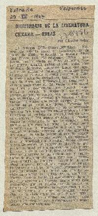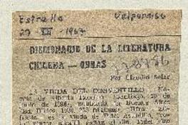 Diccionario de la literatura chilena-obras [artículo] / Claudio Solar. La Estrella (Valparaíso, Chile)-- dic. 27, 1967. .