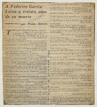 A Federico García Lorca a treinta años de su muerte [artículo] / Waldo Rojas. El Siglo (Diario : Santiago, Chile)-- nov. 13, 1966. .