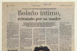 Bolaño íntimo, retratado por su madre [artículo] / Andrés Gómez Bravo. La Tercera (Diario : Santiago, Chile)-- jul. 10, 2005, p. 22-23 (suplemento "Reportajes") .