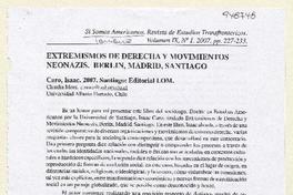 Extremismos de derecha y movimientos neonazis [artículo] / Si Somos Americanos (Revista : Chile)-- no. 1 (2007) p. 227-230. .