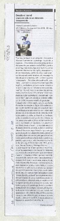 Desde el túnel [artículo] / Pierina Ferretti. Le Monde Diplomatique (Santiago, Chile)-- no. 92 (dic. 2008) p. 38. .