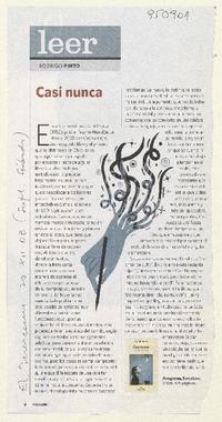 Casi nunca [artículo] / Rodrigo Pinto. El Mercurio (Diario : Santiago, Chile)-- dic. 20, 2008, p. 8 (suplemento "Sábado") .