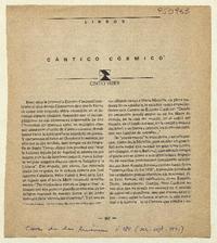 Cántico cósmico [artículo] / Cintio Vitier. Casa de las Américas (Cuba, Chile)-- no. 184 (jul. sept. 1991) p. 147-149. .