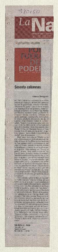 Sesenta columnas [artículo] / Artemio Echegoyen. La Nación (Diario: Santiago, Chile)-- nov. 13, 2009, p. 32. .