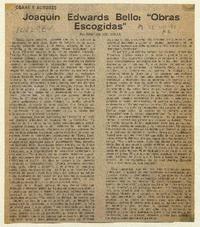 Materias: Obras escogidas - Edwards Bello, Joaquín - Autores chilenos
