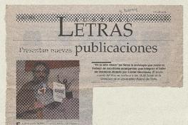 Presentan nuevas publicaciones [artículo] / César Altermatt. Diario Austral (Diario : Valdivia, Chile)-- ene. 20, 2010, p. 21 (suplemento "Austral Letras") .