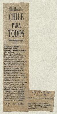 Chile para todos. [artículo] APSI (Revista : Santiago, Chile)-- no. 272 (oct. 3, 1988), p. VIII. .
