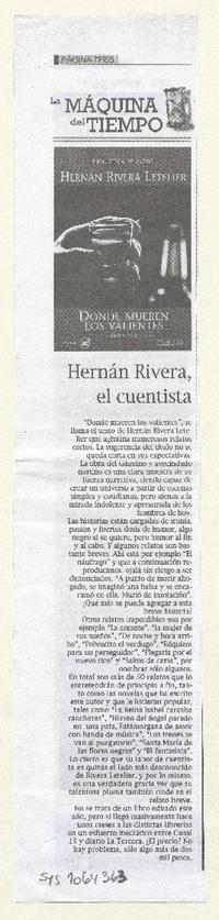 Hernán Rivera, el cuentista [artículo] / El Centro (Diario : Curicó, Chile)-- Año I, no. 19, nov. 16, 2007, p. 3 (suplemento "Letras") .