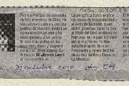 Bachelet en tierra de hombres [artículo] / E. Erlij. El Mercurio (Diario : Santiago, Chile)-- oct. 31, 2010, p. E19. .