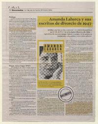Amanda Labarca y sus escritos de divorcio de 1947 [artículo] / La Segunda (Diario : Santiago, Chile)-- mar. 26, 2019, p. 18 y 19. .